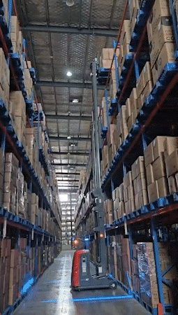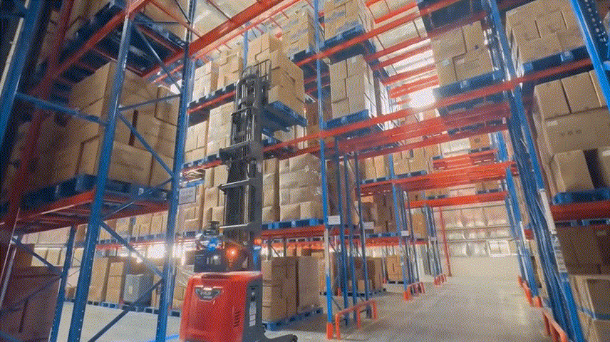 面对五层货架、6148个储位的智能存储需求,乐鱼leyu智能采用小精灵FMR+大前移FMR组合作业,完成货物于一层货架与多层货架的叉取与存放。