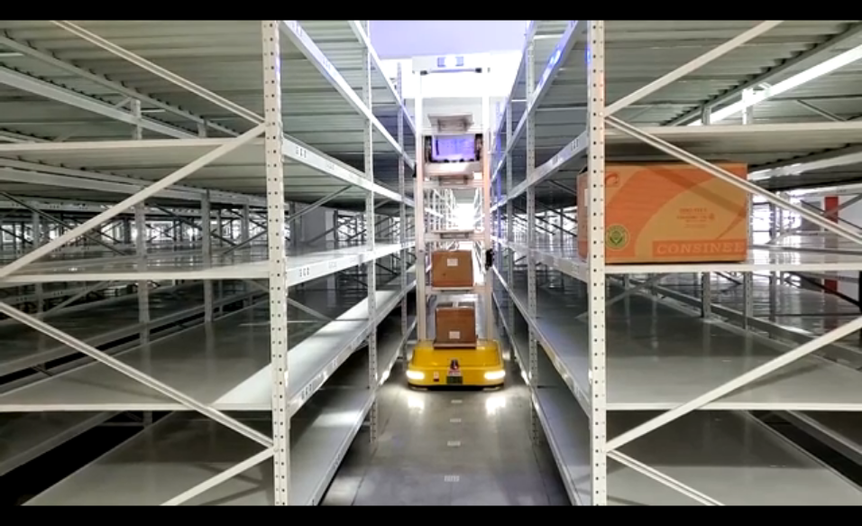 料箱式AGV可以实现“料箱到人”的货物搬运